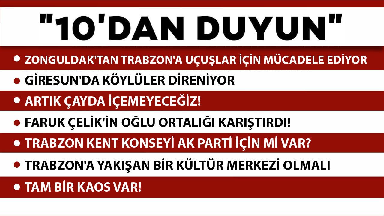 Zonguldak, Bartın, Karabük, Trabzon, Rize, Giresun, Artvin, Gümüşhane bu müjdeyi bekliyor. Zonguldak’tan Trabzon başta olmak üzere İzmir ve Antalya’ya direk uçuş olması talebi Cumhurbaşkanlığı Yüksek İstişare Kurulu (YİK) Üyesi ve 23. dönem Türkiye Büyük Millet Meclisi (TBMM) Başkanı Köksal Toptan'a iletildi. Toptan, Ulaştırma ve Altyapı Bakanı Abdulkadir Uraloğlu’na talebi ileteceğini belirtti.