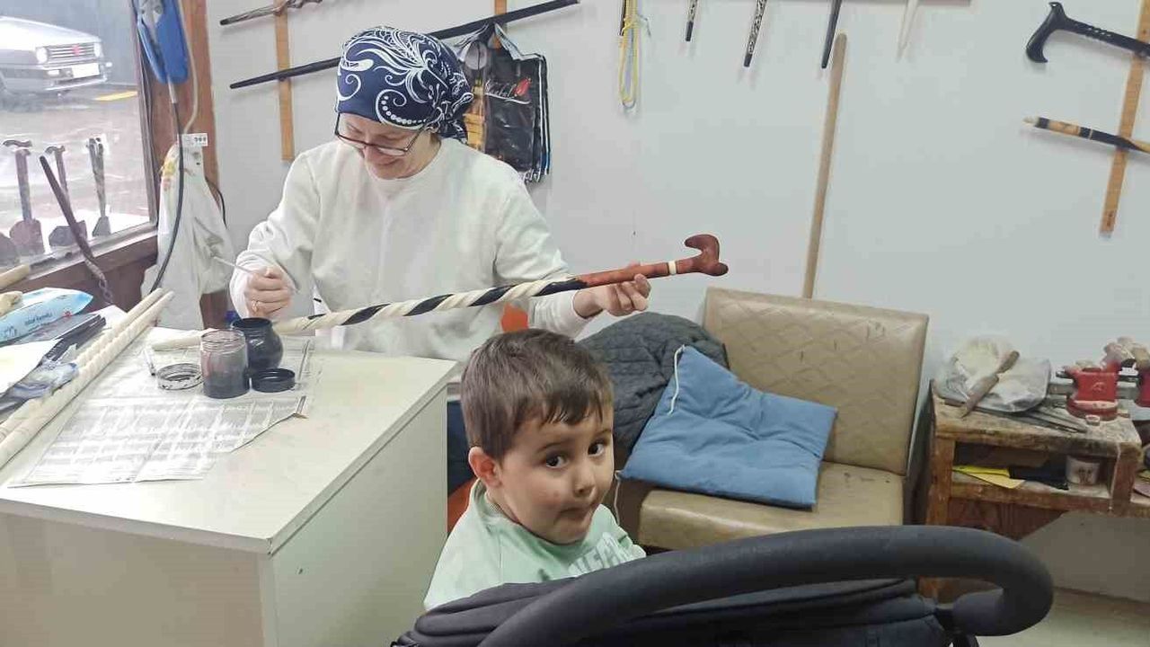 Zonguldak'ın Devrek ilçesinde yaşayan 2 çocuk annesi Fatime Ayvacı, 20 yıldır eşiyle birlikte dünyaca ünlü Devrek bastonu imal ederek hem ustalığını konuşturuyor hem de dükkanında torununu büyüterek kadınların azmini gözler önüne seriyor.