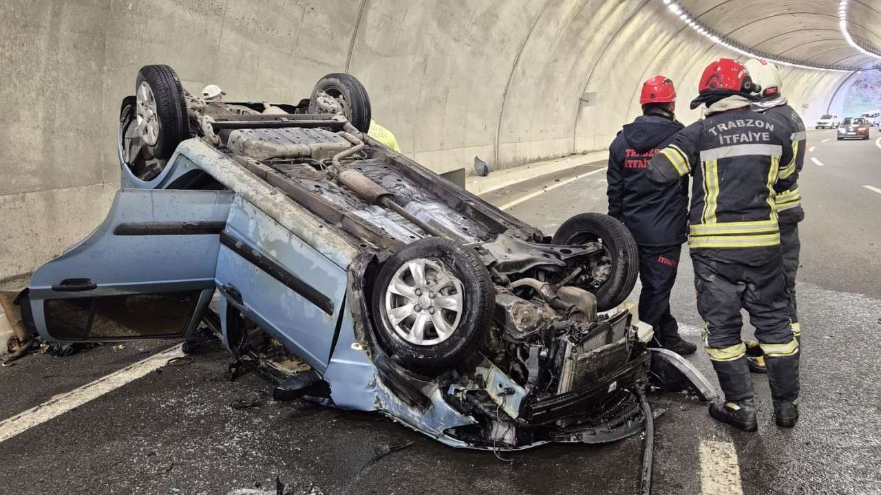 Trabzon Ortahisar’da kontrolden çıkan otomobil, tünel içinde bariyerlere çarparak takla attı. 100 metre sürüklenip alev topuna dönen araçtan sürücü son anda kurtarıldı.