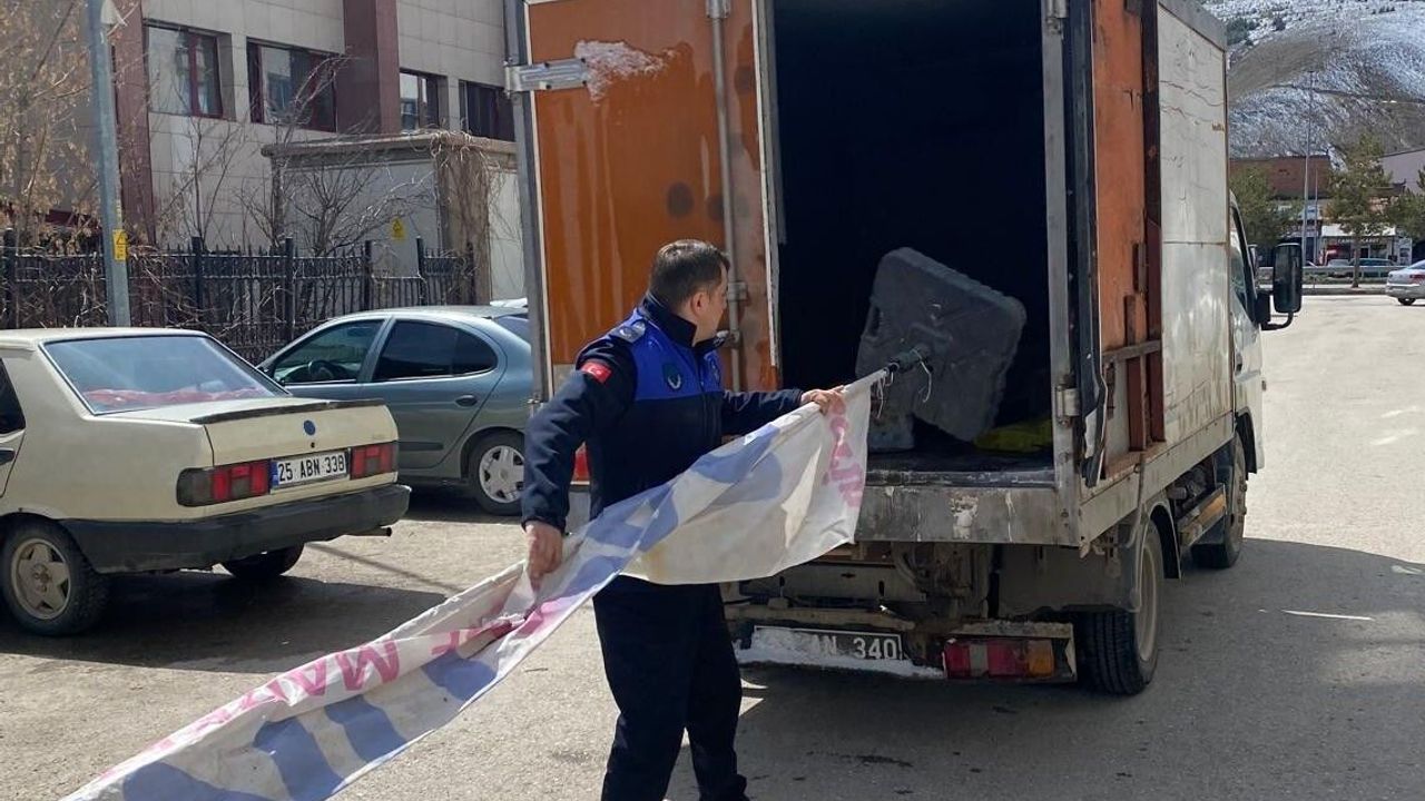 Denetimlerde, kaldırımları işgal ettiği ve araç parkını engellediği belirlenen duba, bayrak ve flamalar ekipler tarafından toplandı.