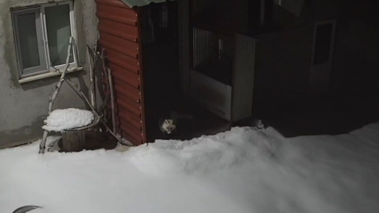 Köyde arıcılıkla uğraşan Veysel Karani Yerlikaya'ya ait evin bahçesindeki güvenlik kamerası kayıtlarında, sabah saatlerinde bir yaban tavşanının bahçede dolaştığı görüldü. Gece saatlerinde ise aynı alana gelen tilkinin av peşinde dolaştığı, yiyecek aradığı kaydedildi.