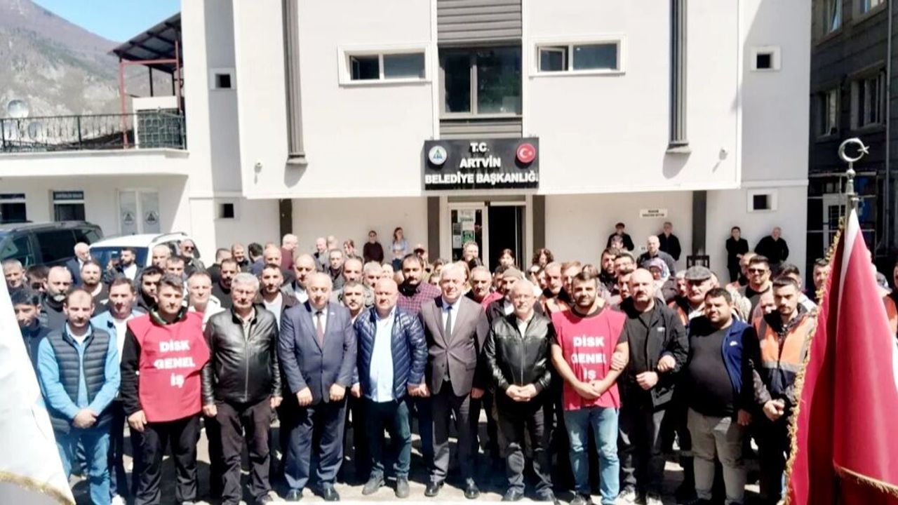 Artvin Belediyesi önünde gerçekleştirilen törene Belediye Başkanı Bilgehan Erdem, DİSK Genel-İş Sendikası Artvin Şube Başkanı Selim Bilgin, sendika temsilcileri ve çok sayıda belediye çalışanı katıldı.