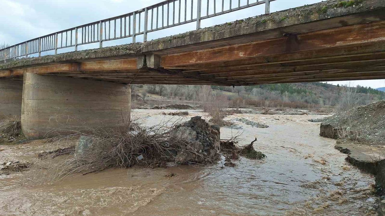 Çorum'un İskilip ilçesinde Kastamonu'nun Tosya ilçesine ulaşımın sağlandığı yoldaki köprünün bir ayağı yıkıldı. Çökme riski oluşan köprü trafiğe kapatıldı.