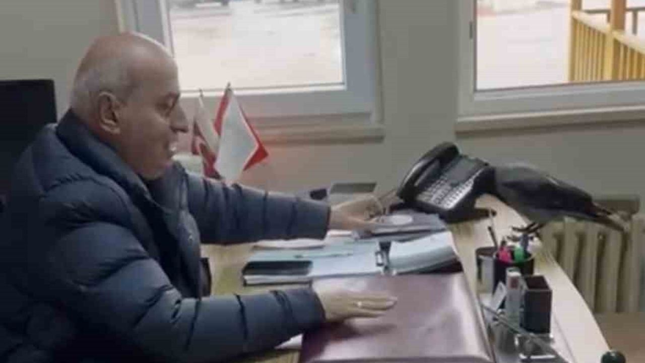 TRABZON – Beşikdüzü Belediye Başkanı Cahit Erdem’in makam odasında ağırladığı davetsiz misafiri ile diyaloğu sosyal medyada gündem oldu. Pencereden giren karga, Başkan Erdem’in elinden yemek yedi, resmi evrakları gagalamaya çalıştı.