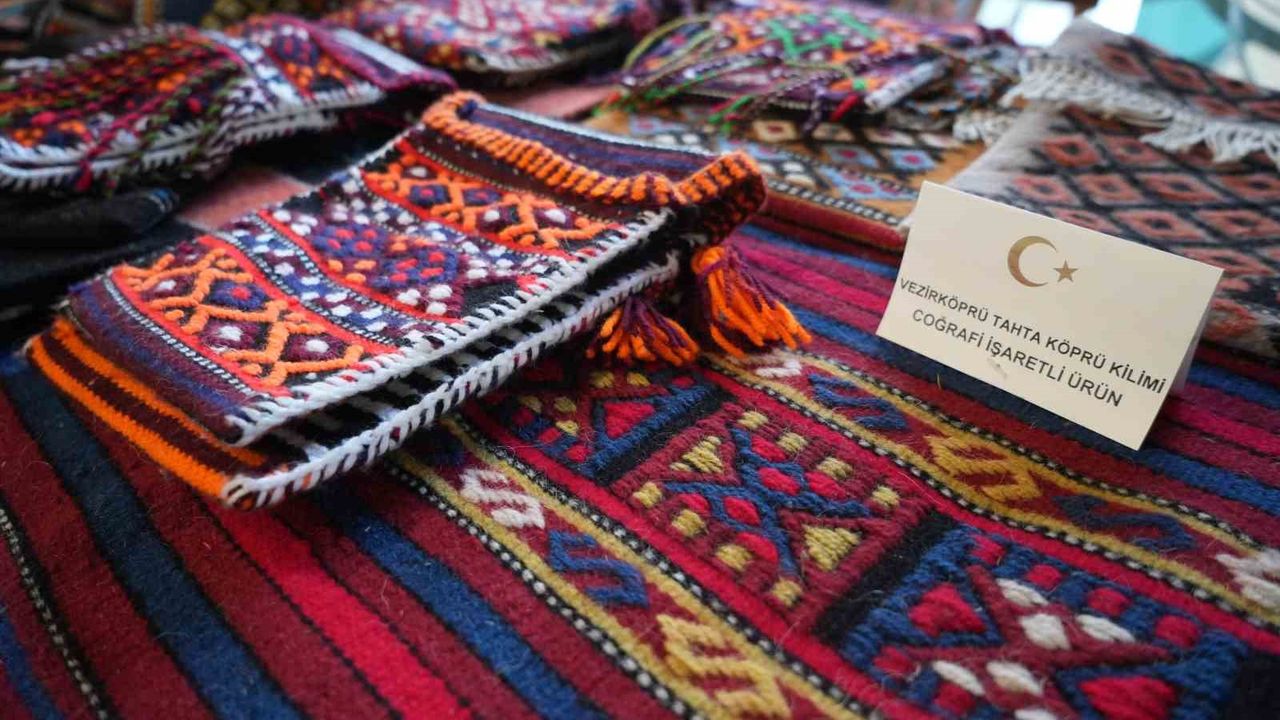 SAMSUN (İHA) - Samsun'un Vezirköprü ilçesine bağlı Tahtaköprü ve Sarıdibek Mahallelerinde kadınlar tarafından el emeğiyle dokunan geleneksel kilimler, ilgi bekliyor. Coğrafi işaret belgesine sahip Tahtaköprü kilimi, geçmişten günümüze kadınların ilmek ilmek işlediği önemli kültürel değerler arasında yer alıyor.
