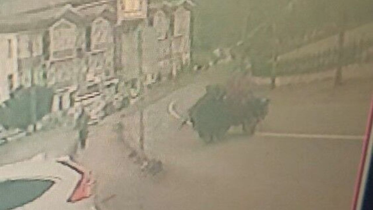 Kaza anı ise güvenlik kamerasına yansıdı. Görüntülerde, tarım aracının lastiğinin yerinden çıktığı ve aracın savrularak takla attığı görülüyor.