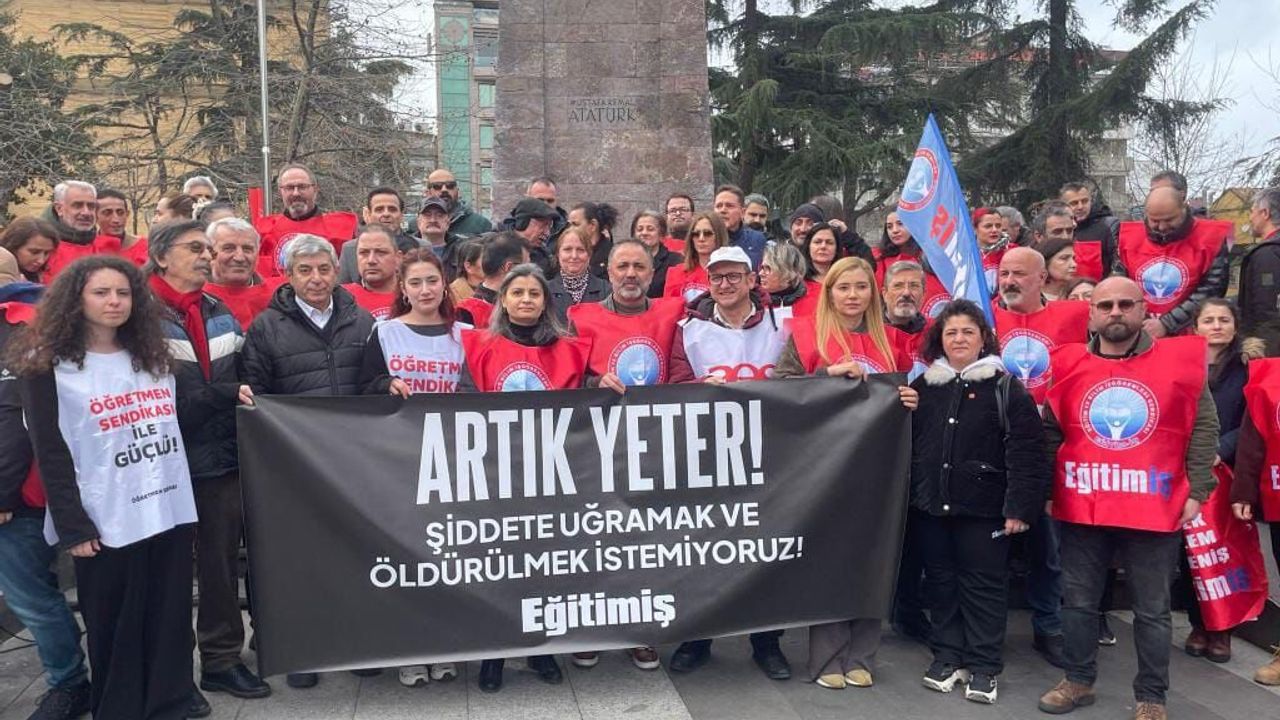 Eğitim Sen Trabzon Şube Başkanı Muhammet İkinci okullarda artan şiddet olaylarına ve buna yönelik hiç bir adımın atılmamasına dikkat çekerek eylemlere ve protestolara devam edeceklerini dile getirdi.
