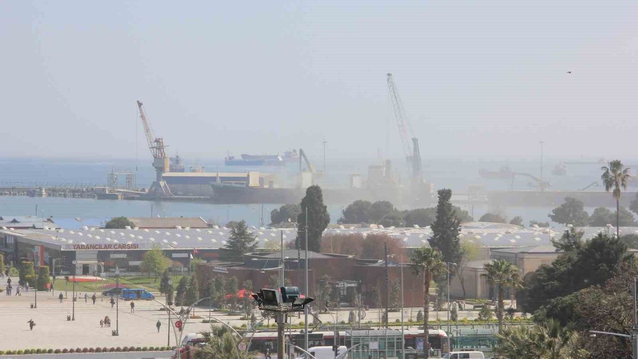 Samsun'da limanda gemiye yapılan yükleme sırasında oluşan yoğun toz bulutu, rüzgarın etkisiyle kent merkezine taşındı.