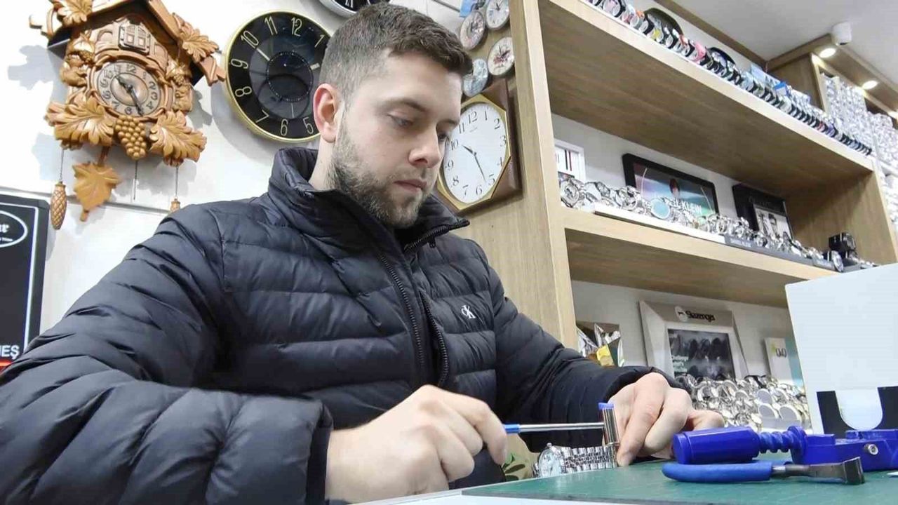Samsun'un en genç saat tamircisi olan 25 yaşındaki genç, baba mesleğini devam ettiriyor.