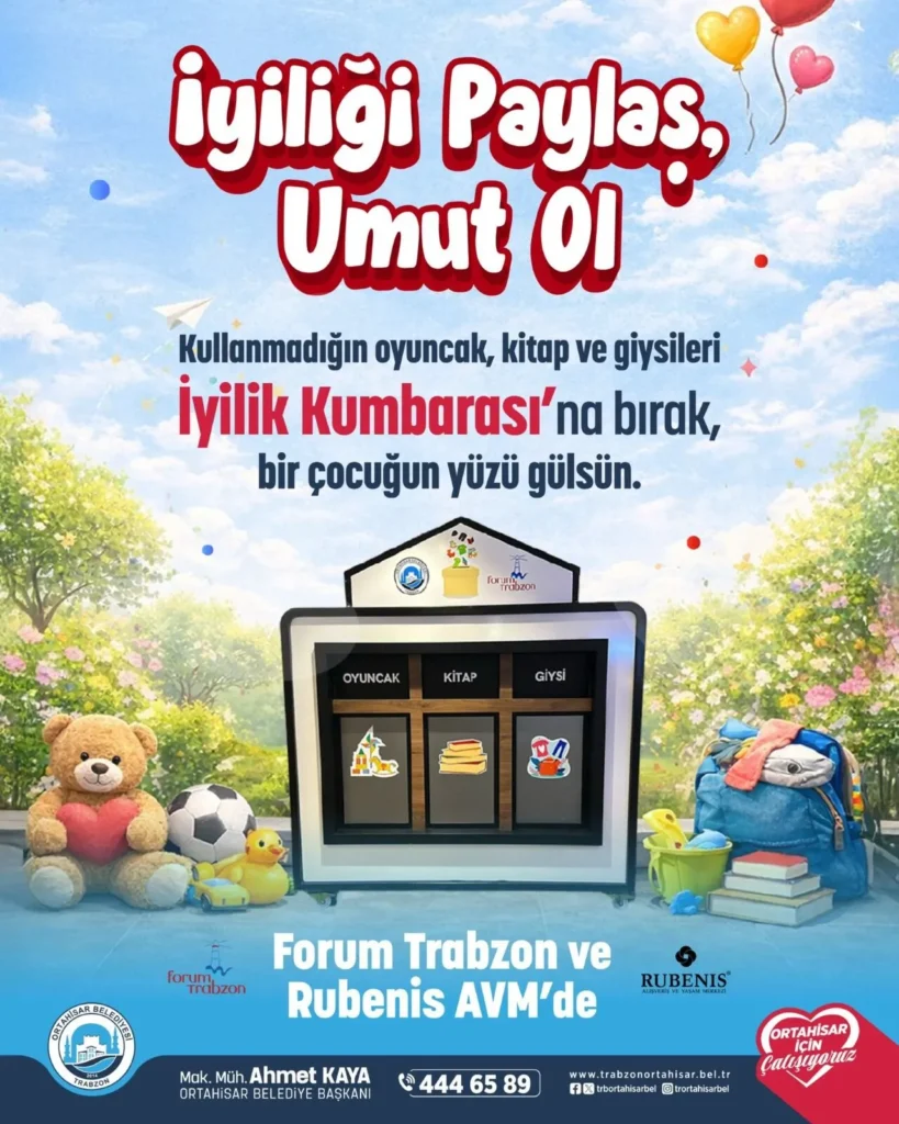 Ortahisar Belediye Başkanı Ahmet Kaya düğmeye bastı: "İyilik Kumbarası" projesiyle çocuklar bayram edecek! Kullanmadığınız oyuncak, kitap ve giysiler umuda dönüşüyor. İşte bağış noktaları...