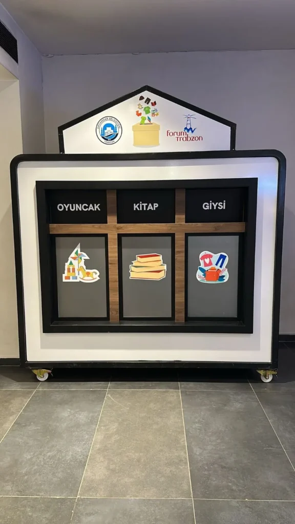 - Bağış Yap: Oyuncak, kitap veya giysiyi kumbaraya bırak.