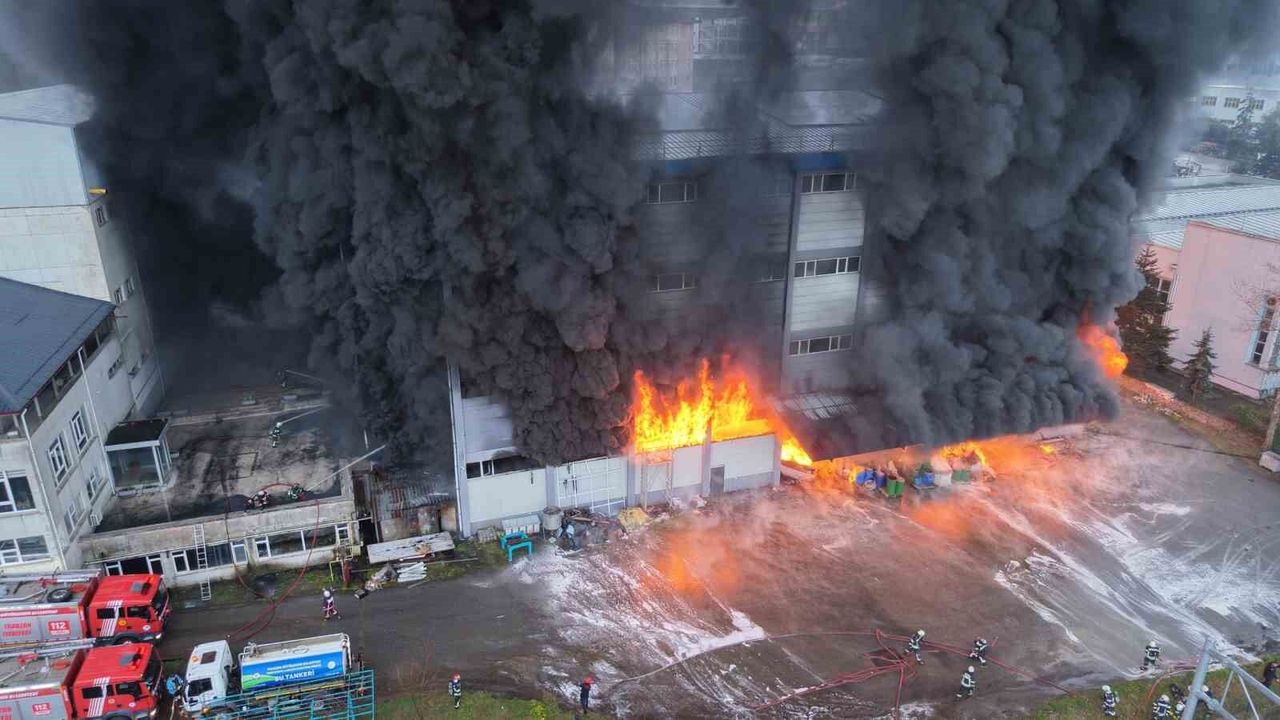 Trabzon'da bir fındık fabrikasında yangın çıktı. Bölgeye sevk edilen ekipler yangına müdahale ediyor.