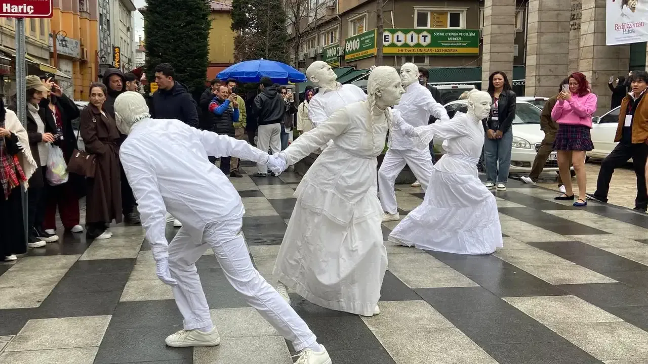 KORTEJ İPTAL, TÖREN KAPALI ALANA ALINDI Kentte etkili olan yoğun yağış nedeniyle Maraş Caddesi’nde yapılması planlanan renkli kortej yürüyüşü iptal edildi. Meydan Parkı’ndaki açılış töreni ise hızlı bir kararla Hamamizade İhsanbey Kültür Merkezi’ne taşındı. Olumsuz hava şartlarına rağmen salonu tamamen dolduran Trabzonlu sanatseverler, festivale yoğun ilgi gösterdi.