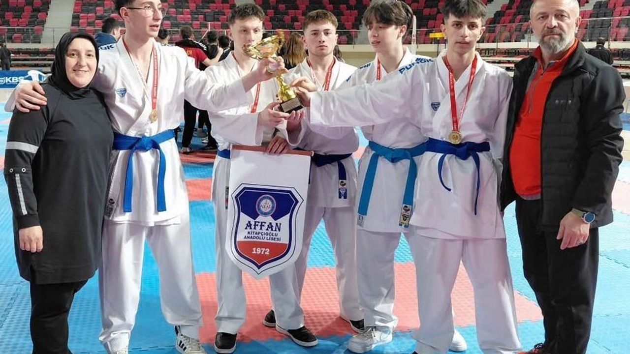 B Genç Erkekler kategorisinde üstün bir performans sergileyen Miraç Akbayrak, Nebil Çelebi, Kağan Bayraktar, Baran Karabina ve Yusuf Kayra’dan oluşan Affan Kitapçıoğlu Lisesi Karate Takımı, disiplinli çalışmaları ve azimleriyle şampiyonluk kupasını Trabzon’a getirmeyi başardı.