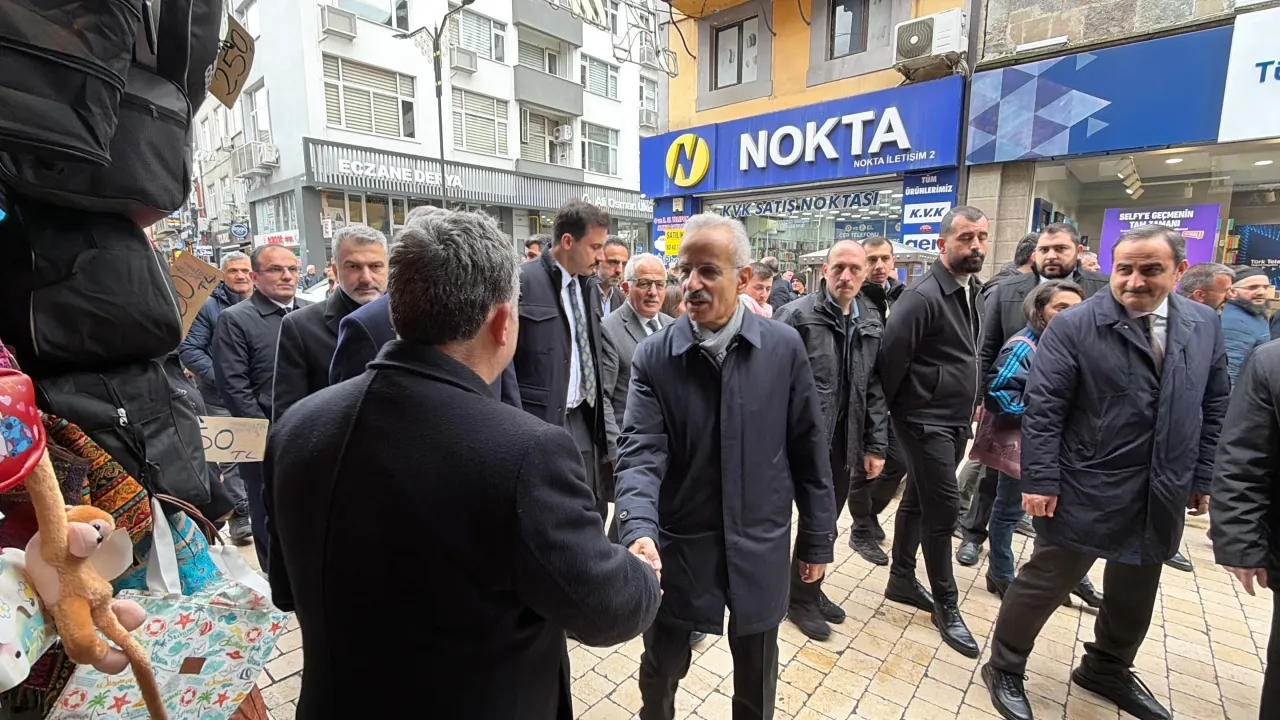 TRABZON – Ulaştırma ve Altyapı Bakanı Abdulkadir Uraloğlu, memleketi Trabzon’da gerçekleştirdiği ziyaretler kapsamında şehrin simge noktalarından Kunduracılar Caddesi’ni gezdi. Trabzon Valisi Tahir Şahin, Büyükşehir Belediye Başkanı Ahmet Metin Genç ve AK Parti İl Başkanı Sezgin Mumcu’nun da eşlik ettiği ziyarette Bakan Uraloğlu, esnafla samimi sohbetler gerçekleştirdi.