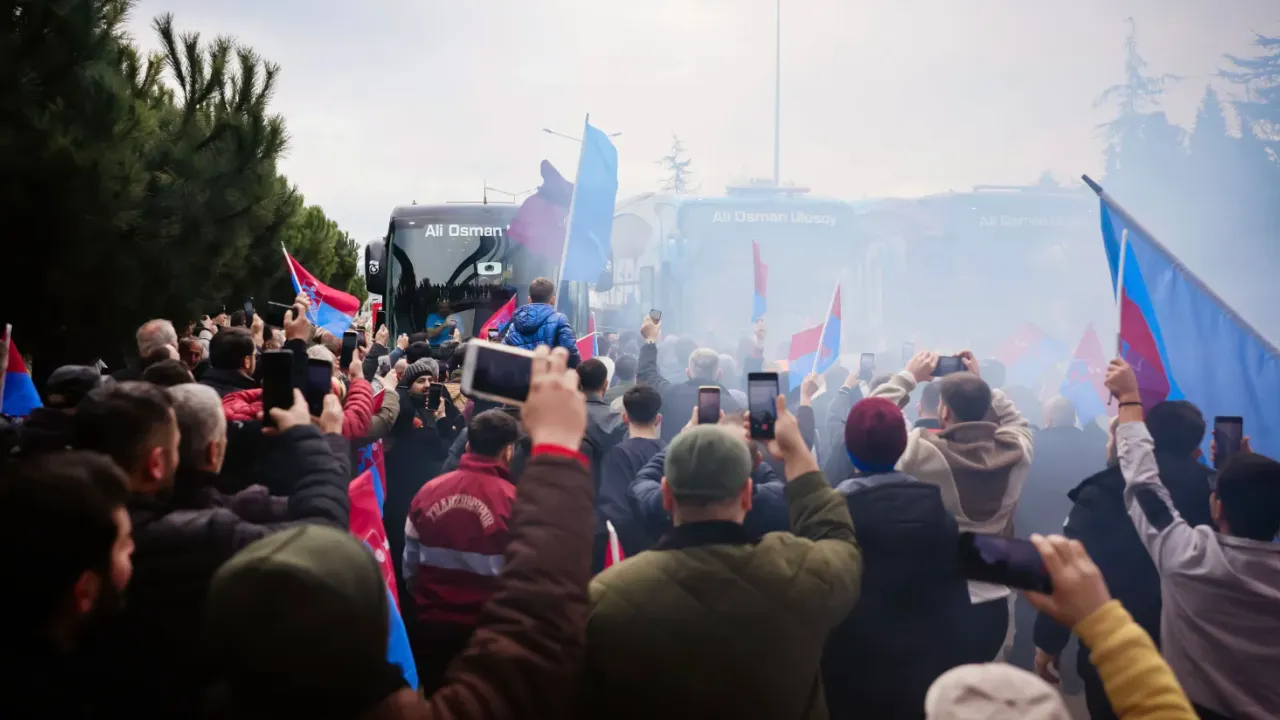 TRABZON – Trendyol Süper Lig’deki kritik Samsunspor deplasmanı öncesi Trabzonspor’da moral depolandı. Takım otobüsü Vakfıkebir’den geçtiği sırada taraftarların görsel şöleniyle durduruldu.
