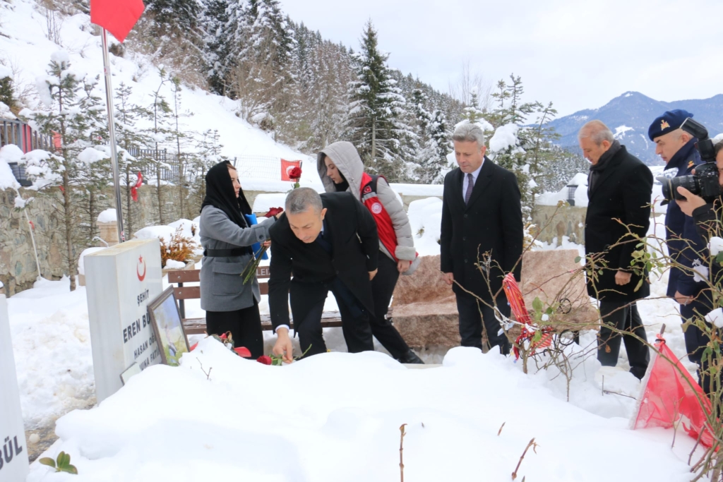 Devletin her zaman şehit ailelerinin yanında olduğunu vurgulayarak Eren’in milletimizin gönlünde müstesna bir yere sahip olduğunu ifade etti. Şehidimizin emaneti ailesiyle yakından ilgilenen Vali ve Hanımefendi, Eren Bülbül’ün hatırasını yaşatmanın en büyük sorumluluklardan biri olduğunu belirterek, aziz şehidimize Allah’tan rahmet diledi.
