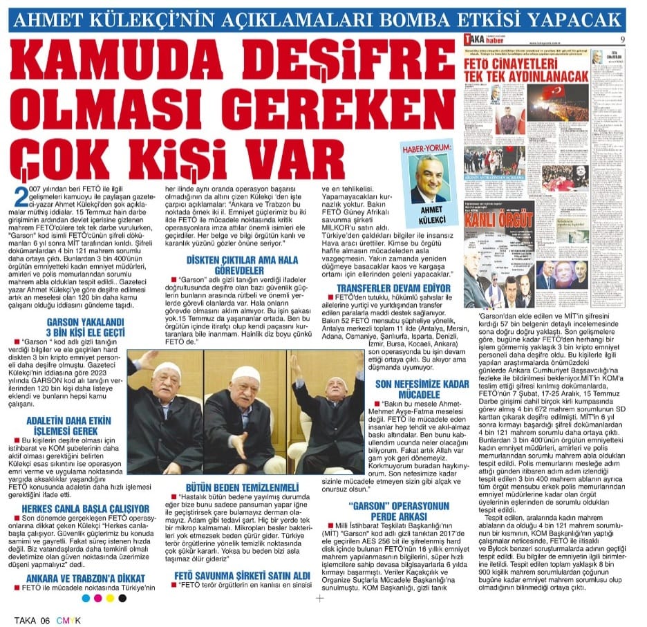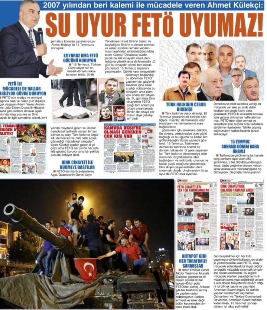 FETÖ ile mücadele noktasında önemli bir süreçten geçen yazıları ve haberleri ile çok önemli gerçekleri ortaya çıkaran 2007 yılında ise FETÖ nün medya yapılanmasına yönelik davalar açan gazeteci yazar Ahmet Külekçi operasyonların önemine ve başarısına değinerek " Devletimiz hainlerin ensesinde inlerinde çok büyük bir mücadele var ama dalların kesilmesi yetmez en büyük hamle gövdeye yapılmalı..FETÖ'den kurtulmanın tek yolu gövdeyi yok etmekten geçer kimsenin gözünün yaşına bakılmamalı" şeklinde konuştu.